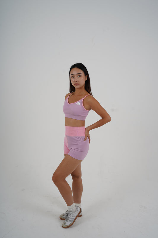GA Women’s Seamless Two-Tone Sports Bra & Shorts Set – Pink/Lilac